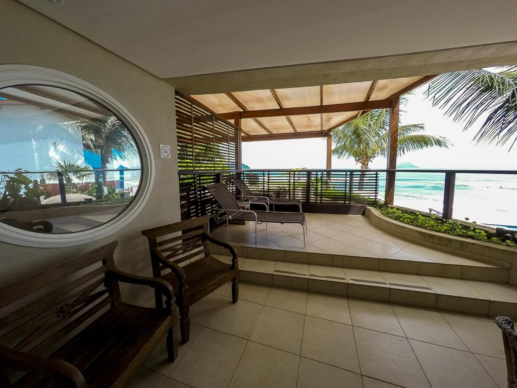 Totalmente frente mar com varanda exclusiva. Muito espaço para acomodar até 4 pessoas confortavelmente. Ar condicionado split com aquecedor, TV tela plana com canais streaming(globoplay), cofre eletrônico e secador de cabelo. Wifi de qualidade e frigobar. Banheiro com arquitetura exclusiva e aquecimento central. Amenites especiais, toalhas de banho e rosto. Chave de acesso em cartão de aproximação. Conforto e segurança no melhor quarto do hotel!